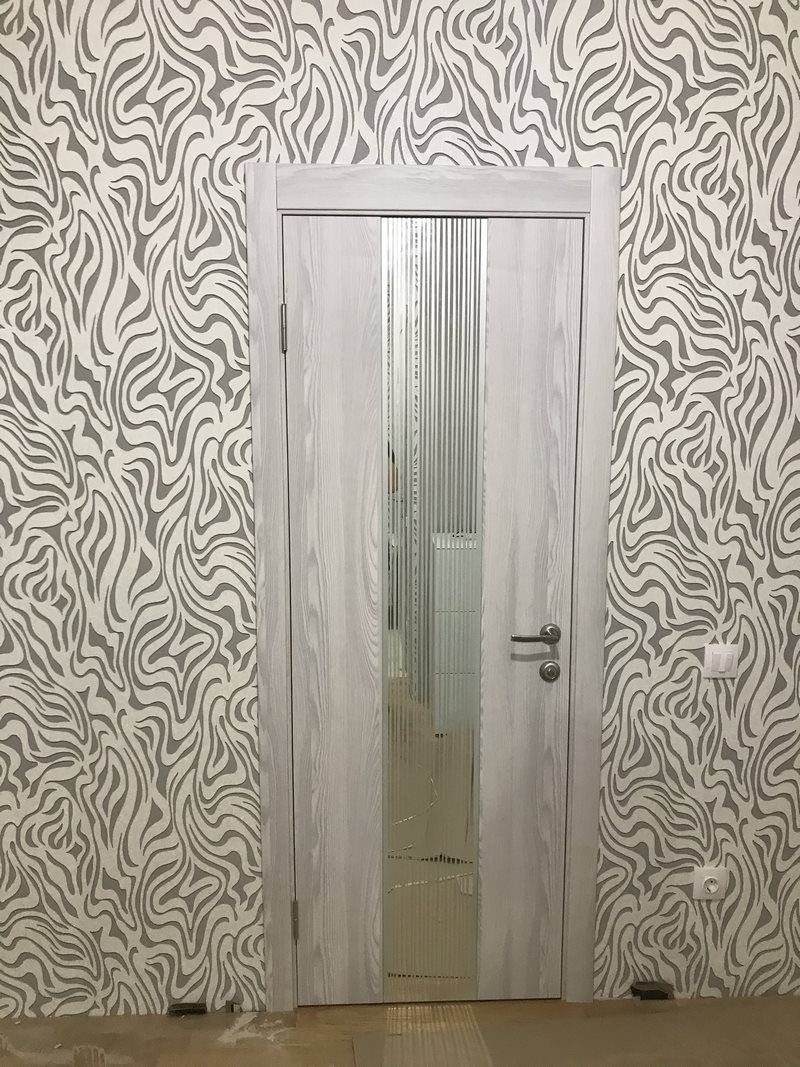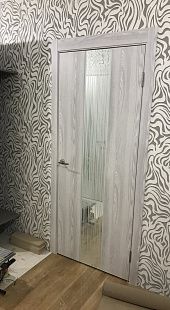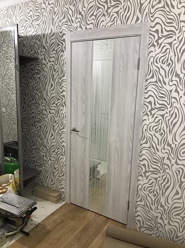 Дверь ПО EXZ 6E Клен айс стекло зеркало с рисунком из Экошпона COVERFLEX (Двери Нева) в Зеленограде с установкой и доставкой