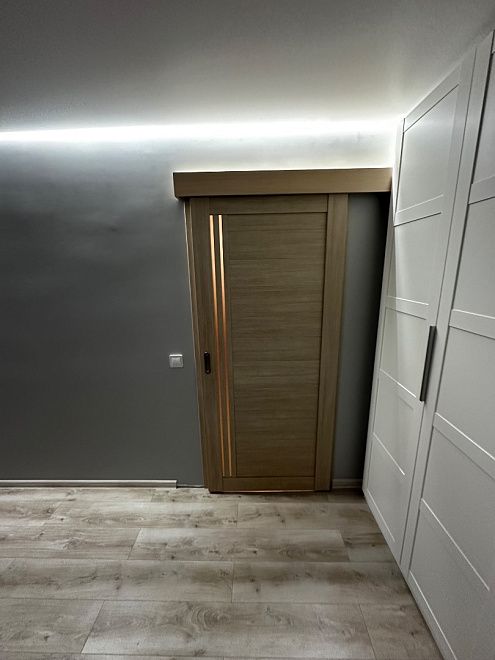 ПО QuLine 8-3 Беленый дуб стекло белое раздвижная с установкой "под ключ" в