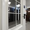 МДФ 10 мм, стеклопакет 2х камерный, внешнее стекло тонировано серебром, металлическая решетка окрашена в цвет наружной отделки